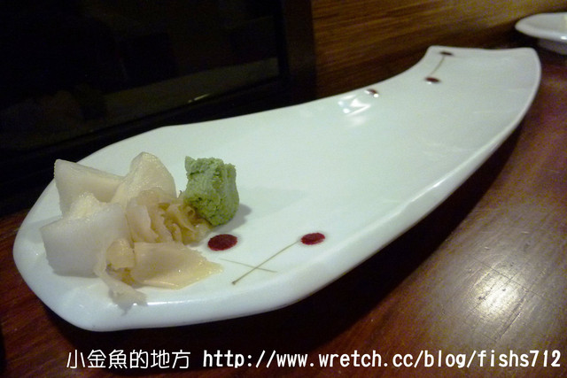 盤上有醃蘿蔔、嫩薑、芥末