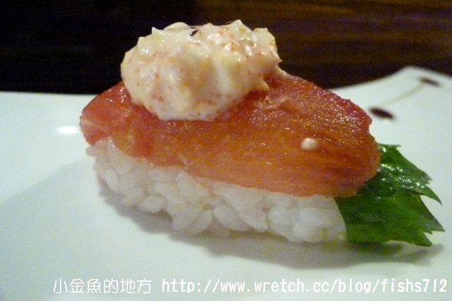 第一道蝦軟沙拉蕃茄握壽司